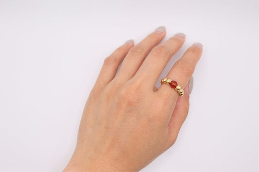 18k Solid Gold Beaded Ball Ring