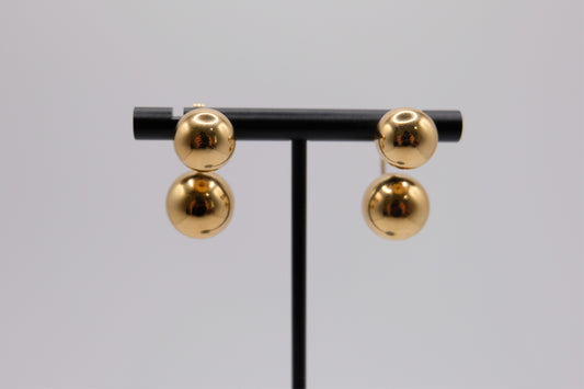 18k Solid Gold Double Ball Earring Stud
