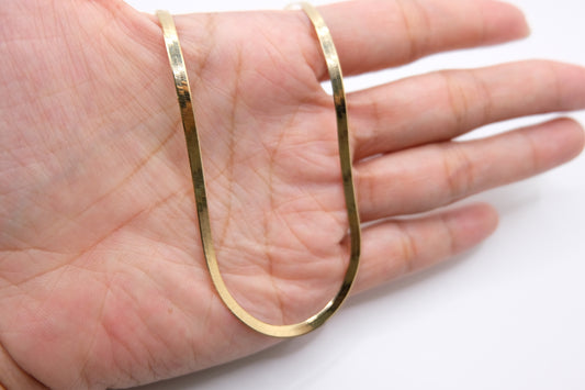 18k Solid Gold Blade Chain Necklace / Herringbone chain necklace