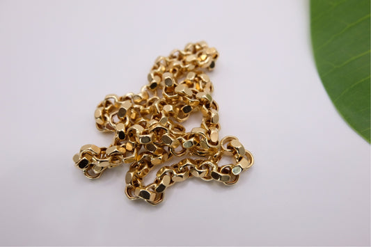 18k Solid Gold Diamond-Cut Round Rolo Link Chain Necklace