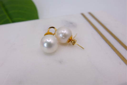 18k Solid Gold Large White South Sea Pearl Earring Stud